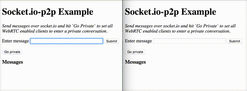 Today were very happy to introduce Socket.IO P2P, the easiest way to establish a bidirectional events channel between two peers with a server fallback to provide maximum reliability.